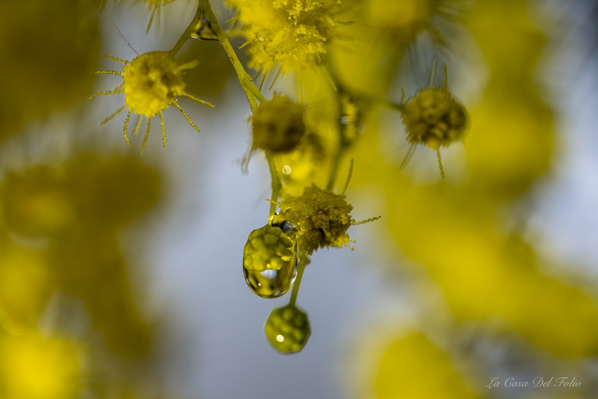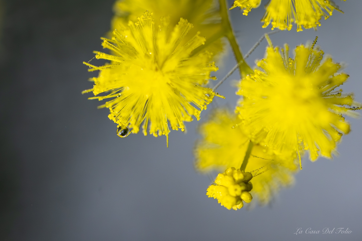 Photographie macro de fleurs de mimosa jaunes en pleine floraison