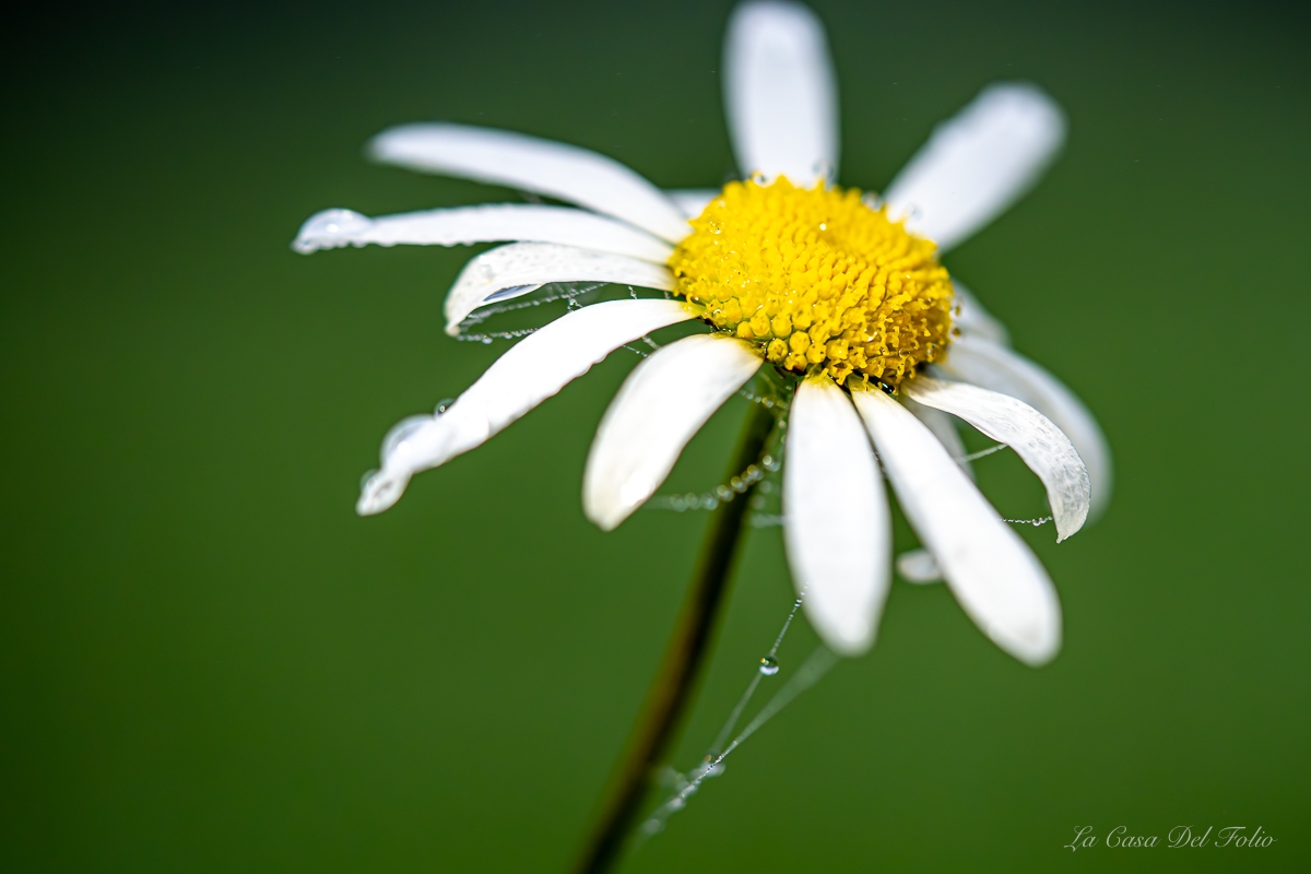 Photographie macro d’une marguerite blanche avec gouttes de rosée